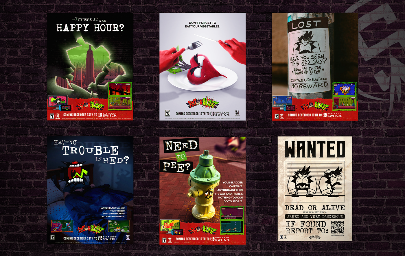 Collaborated with studio Summitsphere, creating creative retro promotional posters to announce the Nintendo Switch release date of ANTONBLAST.